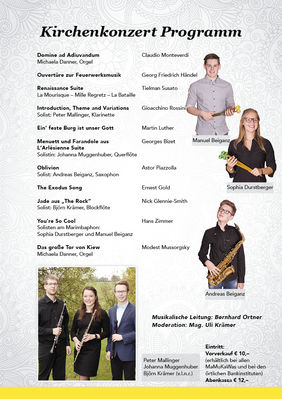Unter der Leitung von Kapellmeister Bernhard Ortner spielte die Mamukawa Musik aus mehreren Jahrhunderten. Konzertsprecher Mag. Uli Krämer nahm durch interessante Details und Informationen zu den Musikstücken die Zuhörer mit auf die musikalische Zeitreise von den Schreittänzen der Renaissance und Kirchenmusik von Martin Luther bis zu moderner Blasmusikliteratur.